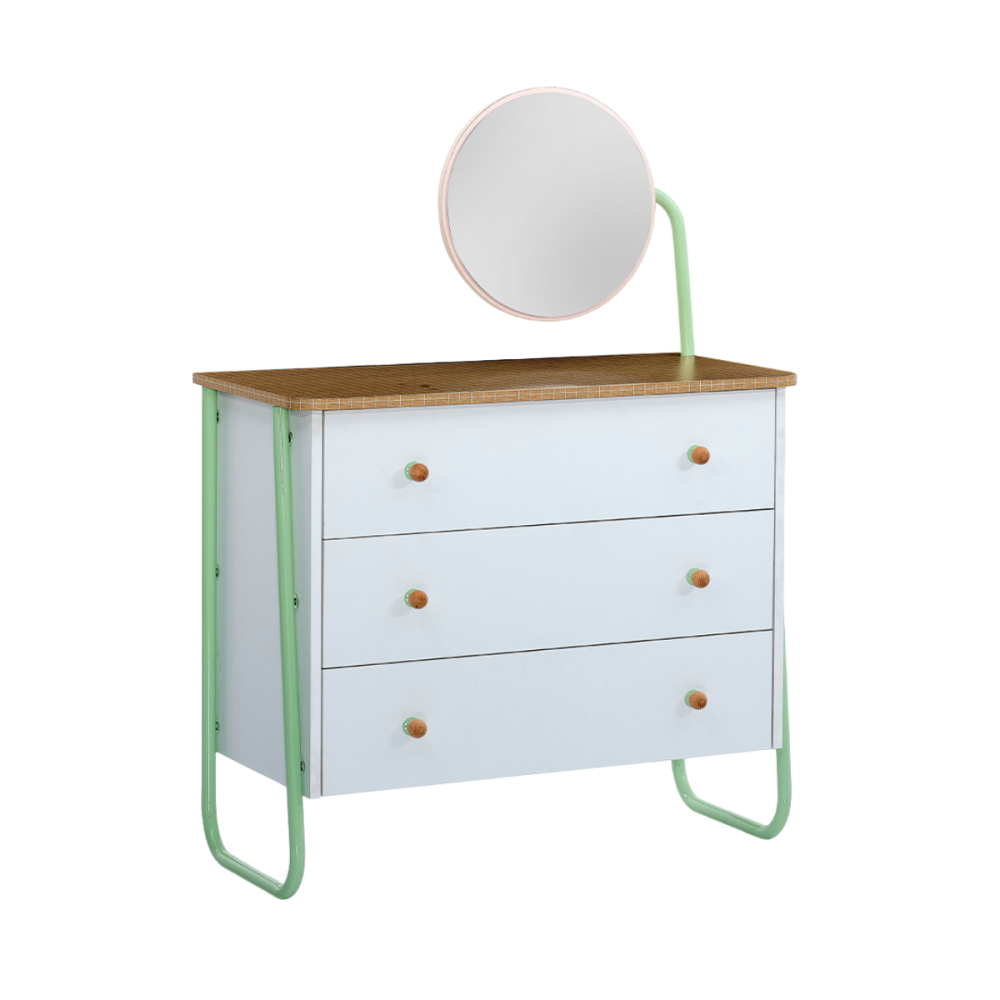تسريحة جولي بتصميم أنثوي أنيق، تأتي بمرآة كبيرة وأدراج متعددة لتنظيم أدوات التجميل. لونها الفاتح يضفي إشراقًا ولمسة راقية على غرفة النوم.