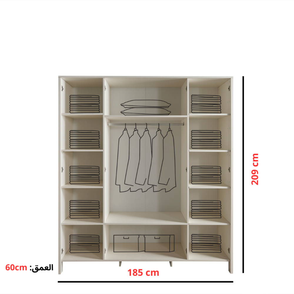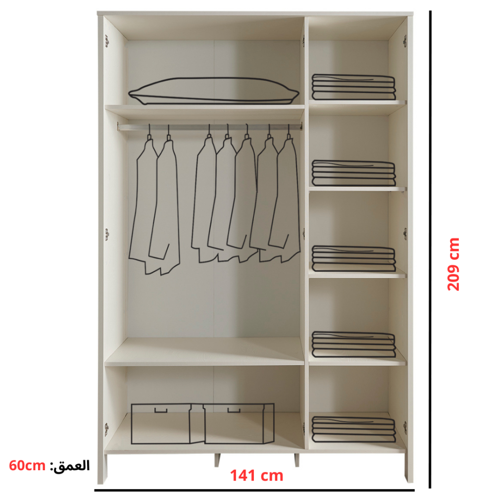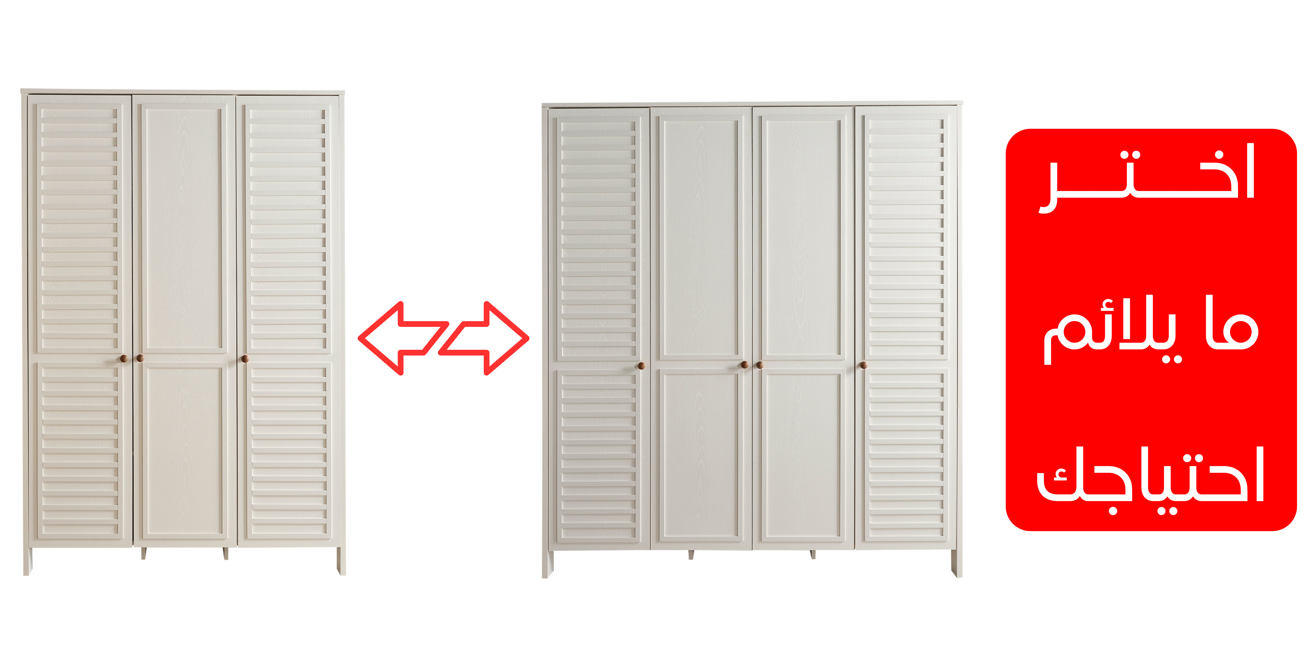 يمكنك اختيار مقاس دولاب ملابس حسب احتياجك والمساحة المتاحة في الغرفة