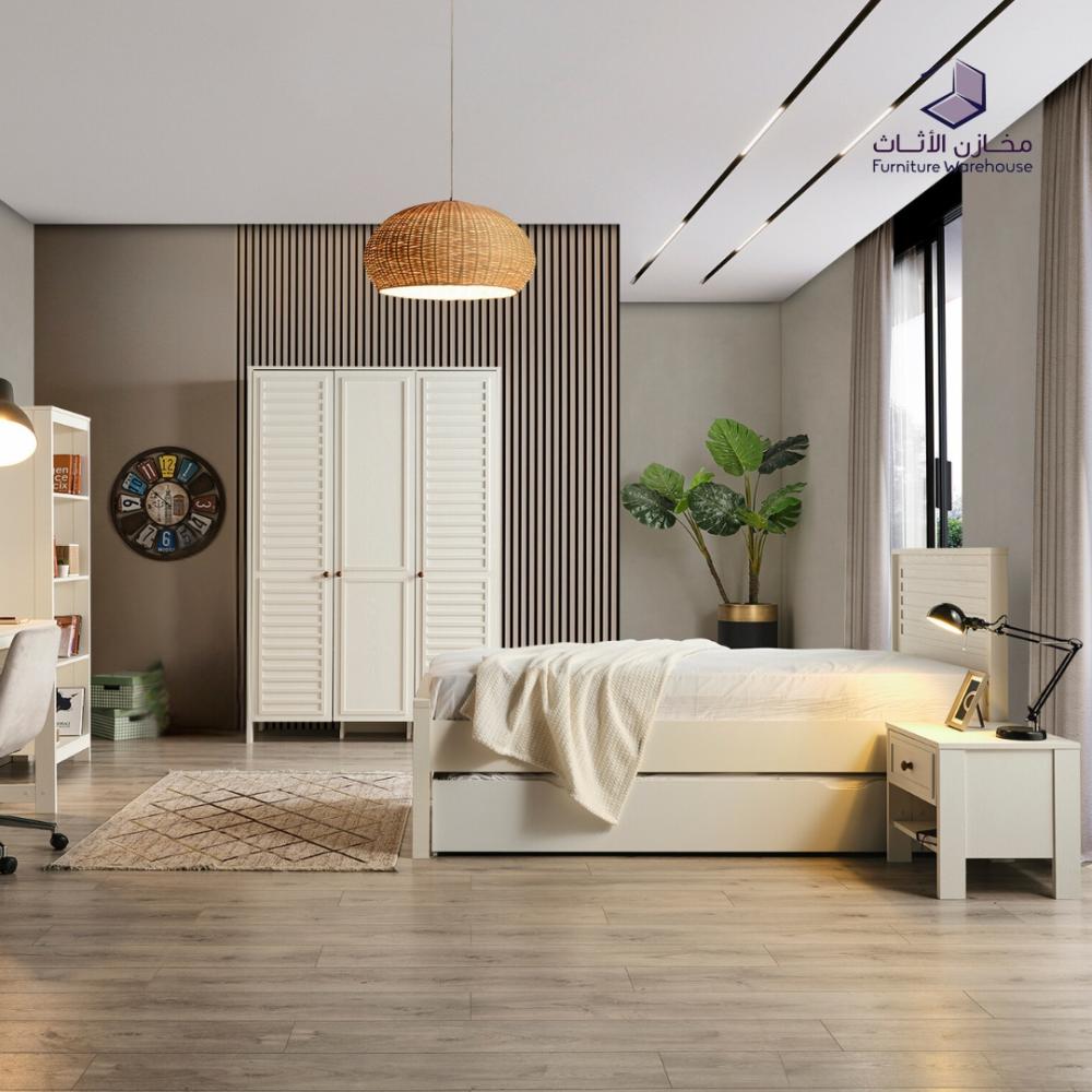 كما يمكنك إضافة مكتب دراسي خشبي أو تسريحة أو مكتبة كتب أنيقة لتشكيل طقم غرفة نوم مفرد كاملة وفقاً لرغبتك :