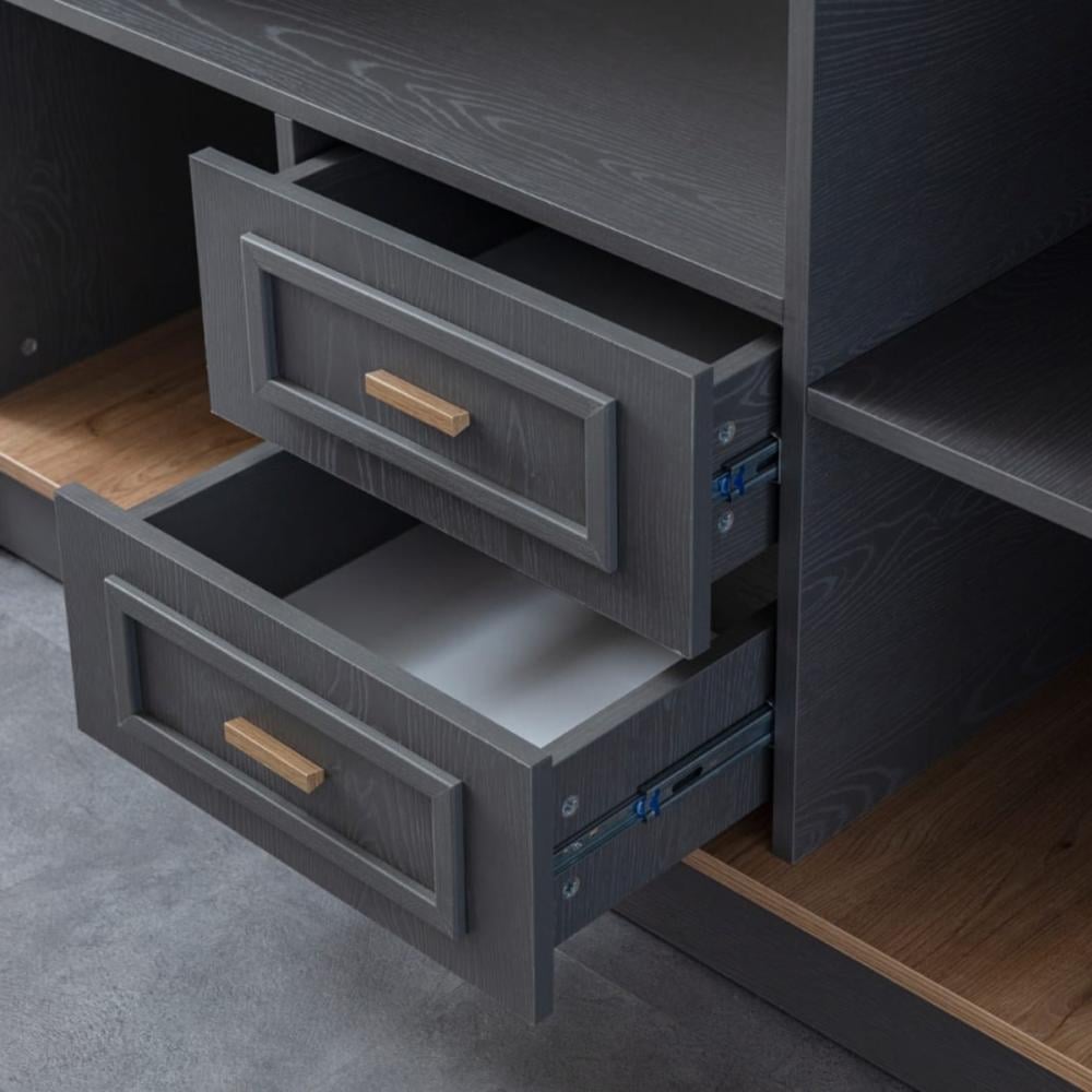 • نوع الدهان: قشرة ميلامين مقاومة للسوائل والخدوش بملمس خشبي مميز.
