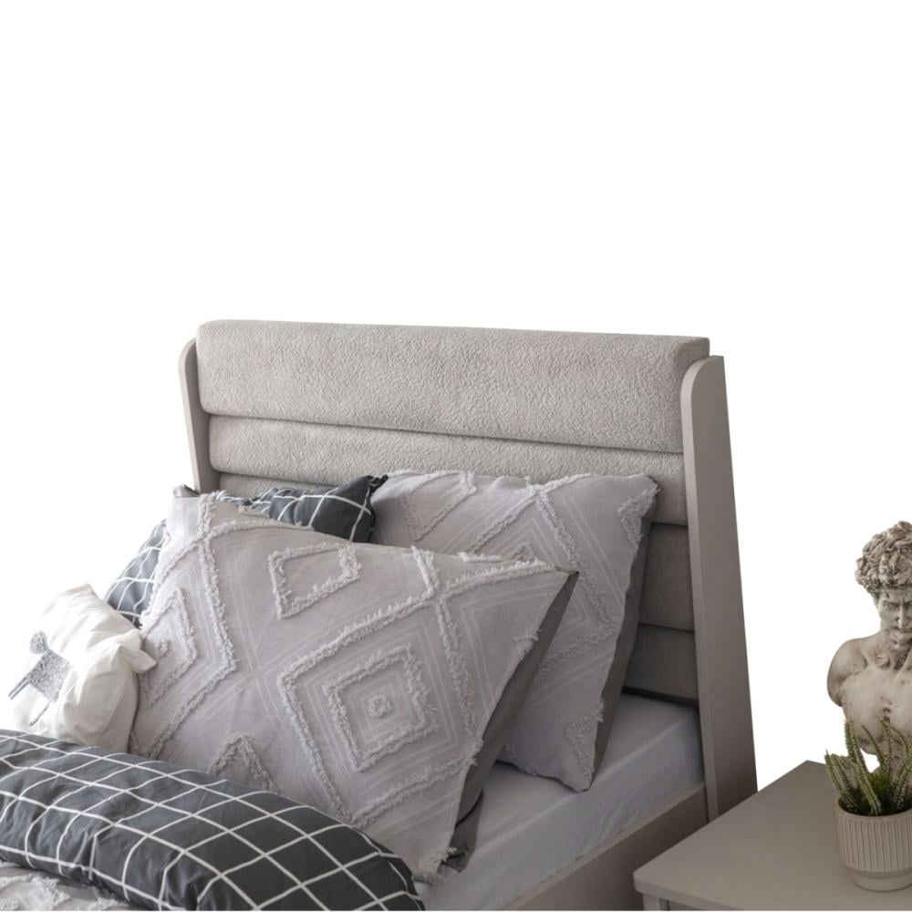 رأس السرير مبطن بلمسة ناعمة تمنح شعورًا بالراحة والدفء، وتصميمه البسيط ينسجم مع أي ديكور.